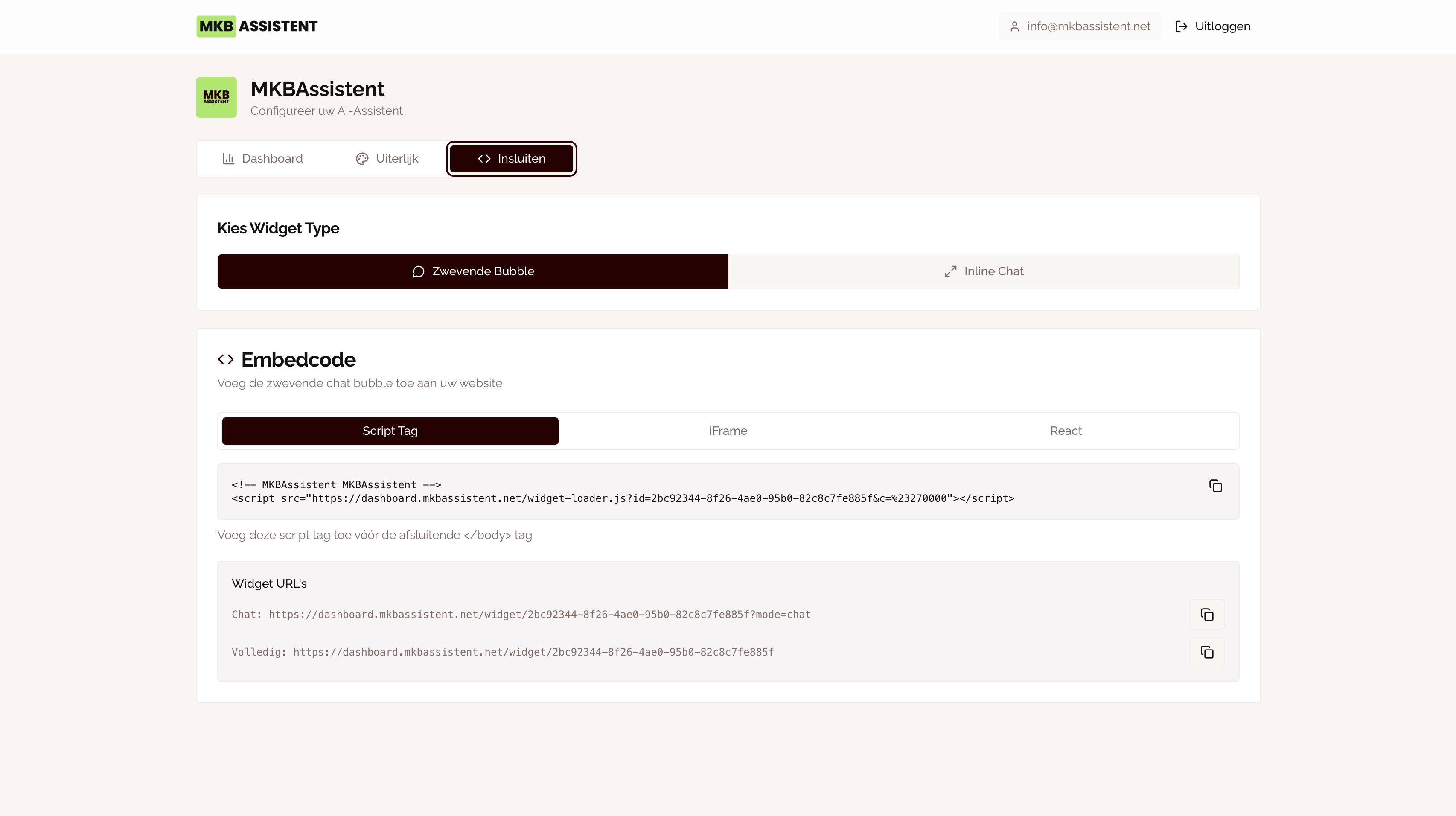 Bent u niet bekend met het plaatsen van een scriptje op uw website? Geen probleem! Wij kunnen de implementatie voor u uitvoeren in nadat uw MKBAssistent heeft aangeschaft.